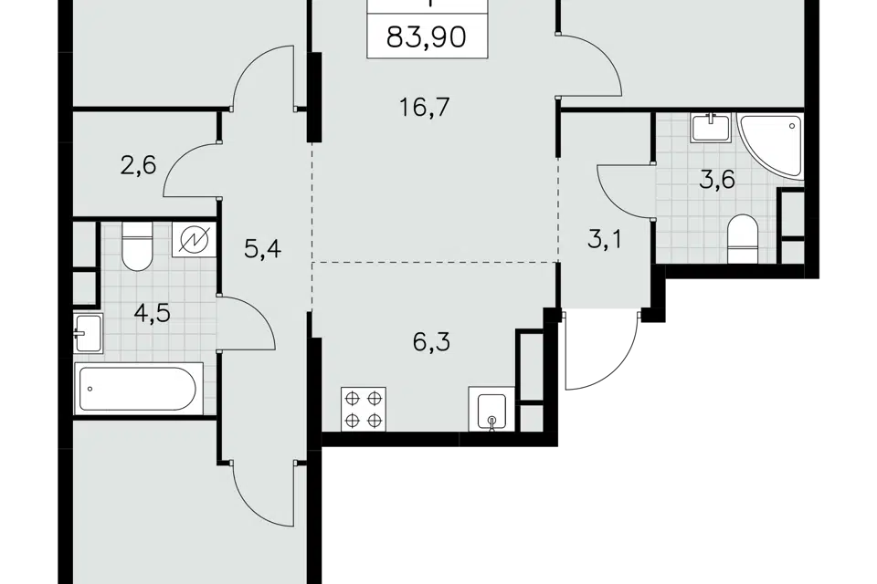 4-комн. кв., 83.9 м², 13/30 этаж