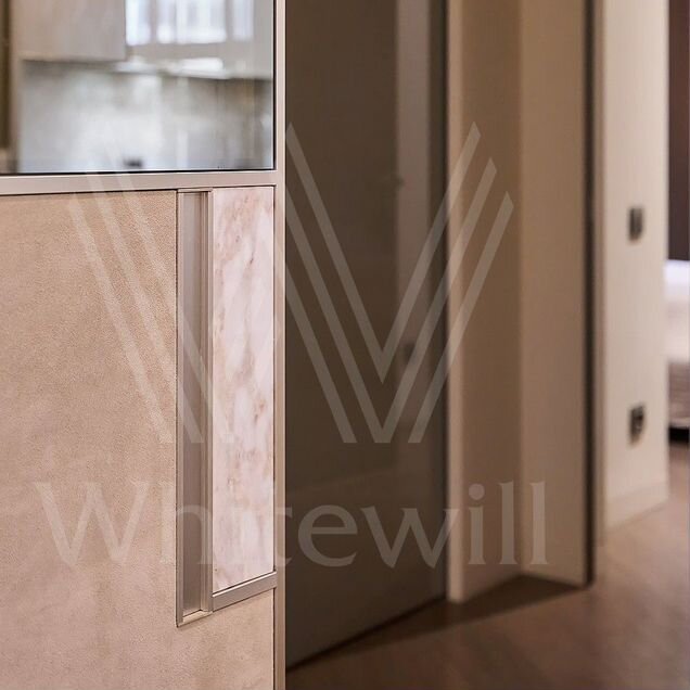 Квартира с тремя спальнями общей площадью 280 м² в клубном комплексе делюкс-класса "Парк Палас" на "Золотой Миле" в Хамовниках. Квартира с новой отделкой расположена на 3-м этаже. В оформлении использованы натуральные материалы — мрамор от компании "КАМ", колонна из кварцита от Aisberg, гранитные подоконники Magma, на полу тонированный дуб. Остальные материалы: алебастр, латунь, эксклюзивный шпон, натуральные камни, перламутр, хрусталь, авторское стекло, шелк, бархат.