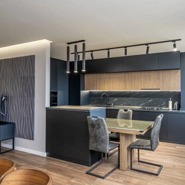 Освещение от галереи американского света Visual Comfort: Ralf Lauren, Kelly Wearstler, Aerin Lauder, Joy Nye Eichholt, винтажный свет Италия, Mazzega. Интерьеры украшают картины на заказ Kuzub Ar. Установлены системы "умный дом", "умные плинтусы" с подсветкой, видеонаблюдение и ТВ от бренда Samsung серии The Frame.