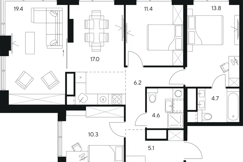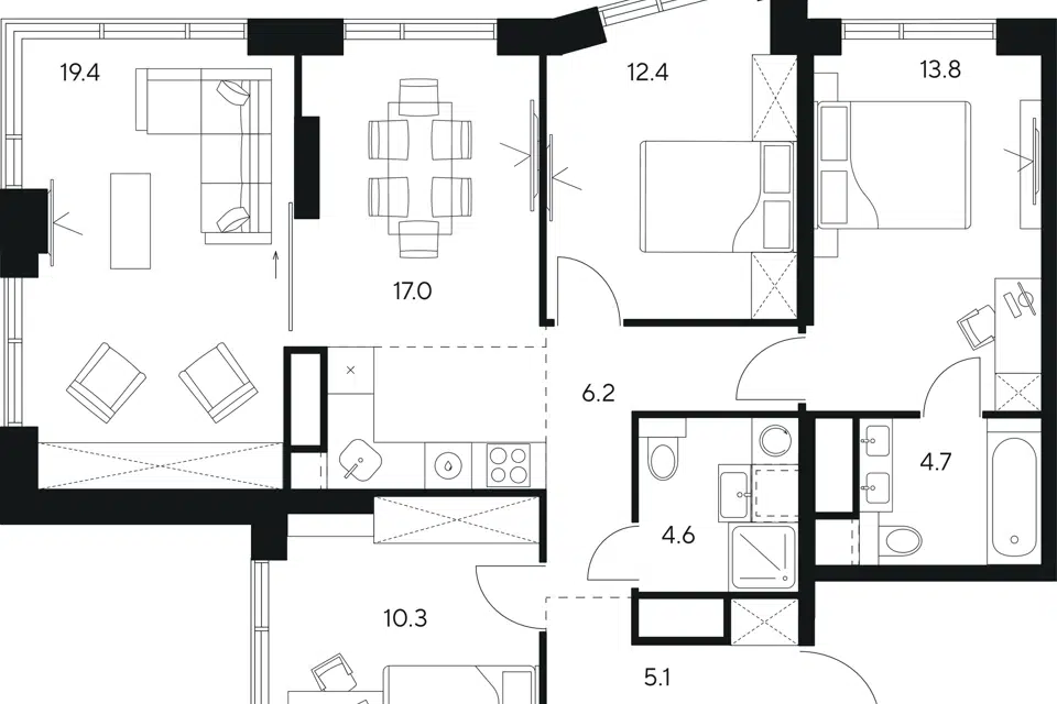 Купить четырехкомнатную квартиру в Москве в районе Кунцево