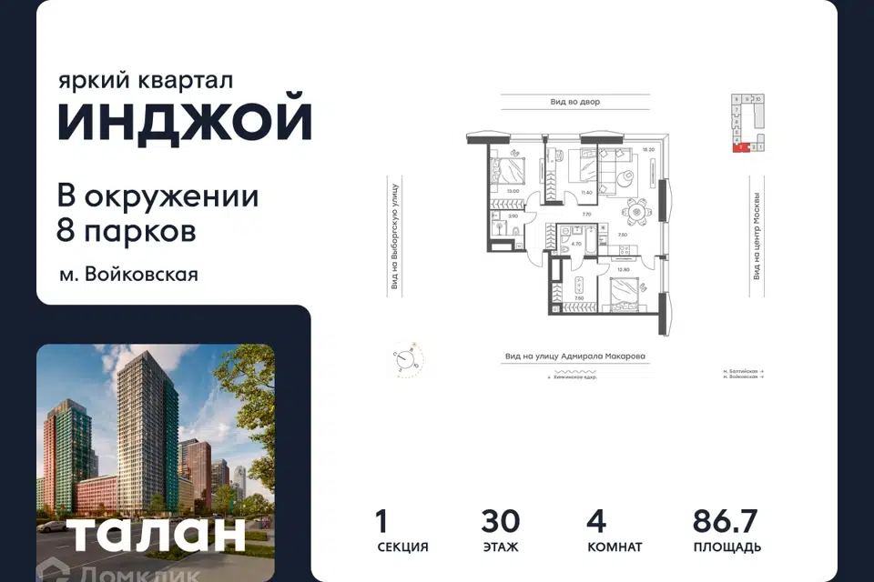 4-комн. кв., 86.7 м², 30/36 этаж