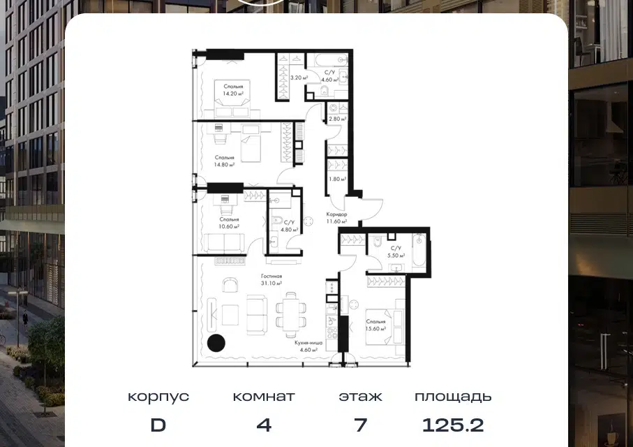4-комн. кв., 125.2 м², 7/39 этаж