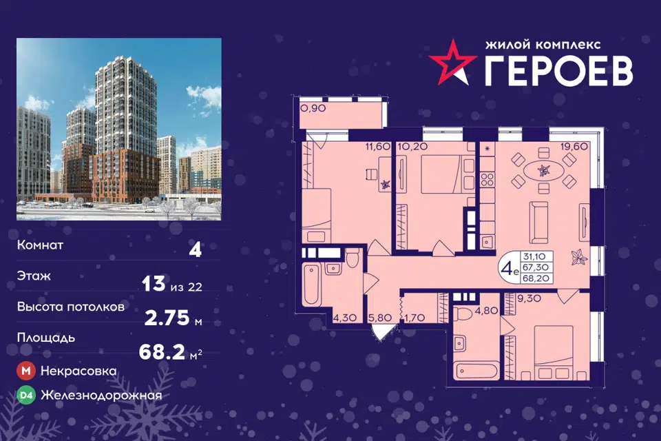 4-комн. кв., от 67.6 м², 2-19 этажи