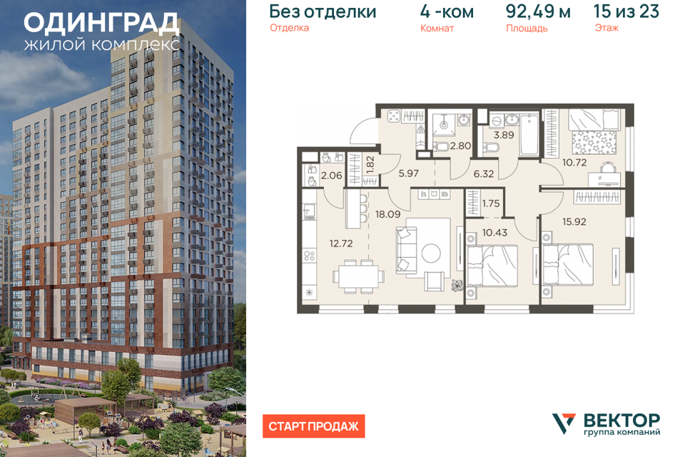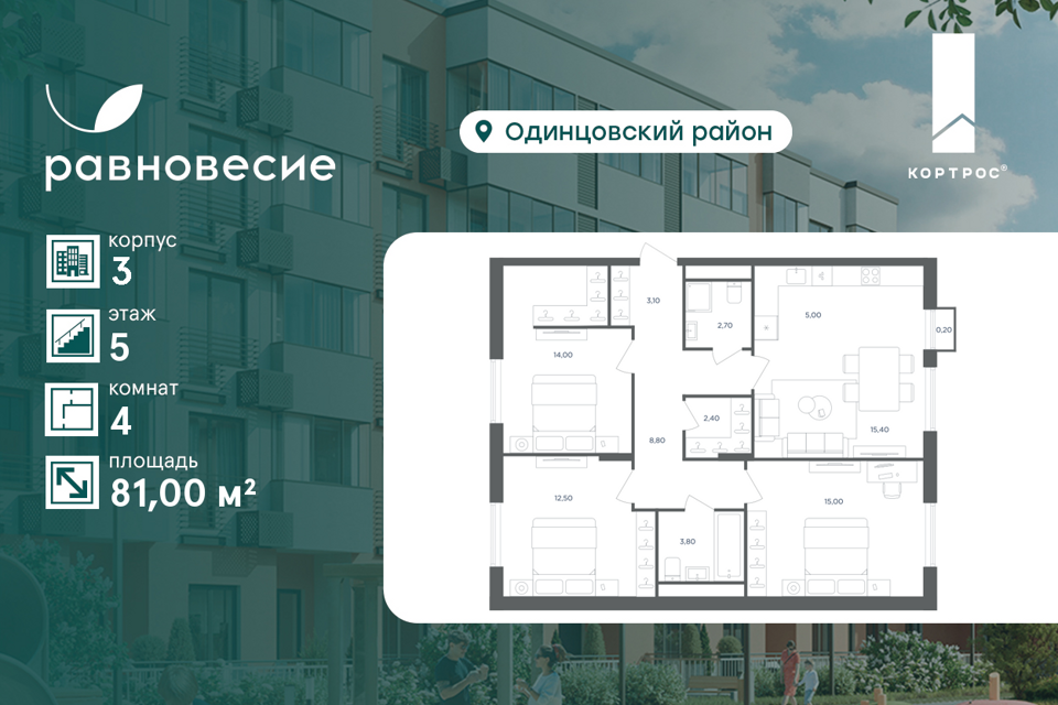 4-комн. кв., от 70.4 м², 4-15 этажи