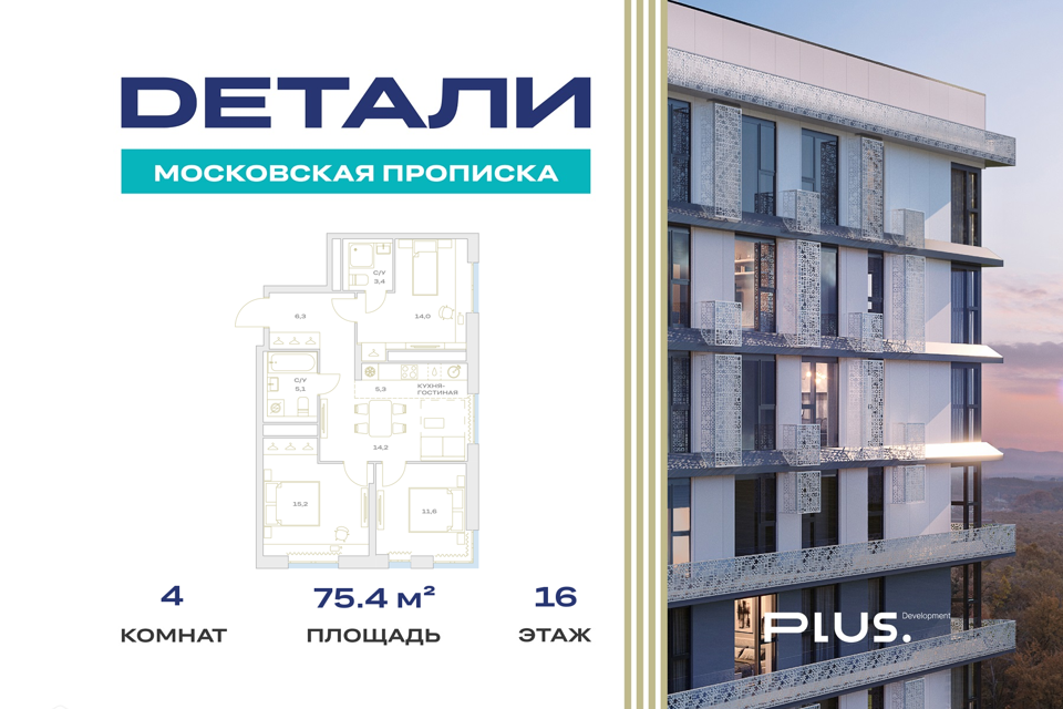 4-комн. кв., 75.4 м², 21/24 этаж