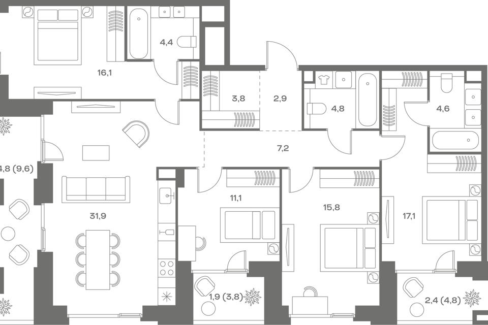 4-комн. кв., 121.9 м², 9/11 этаж