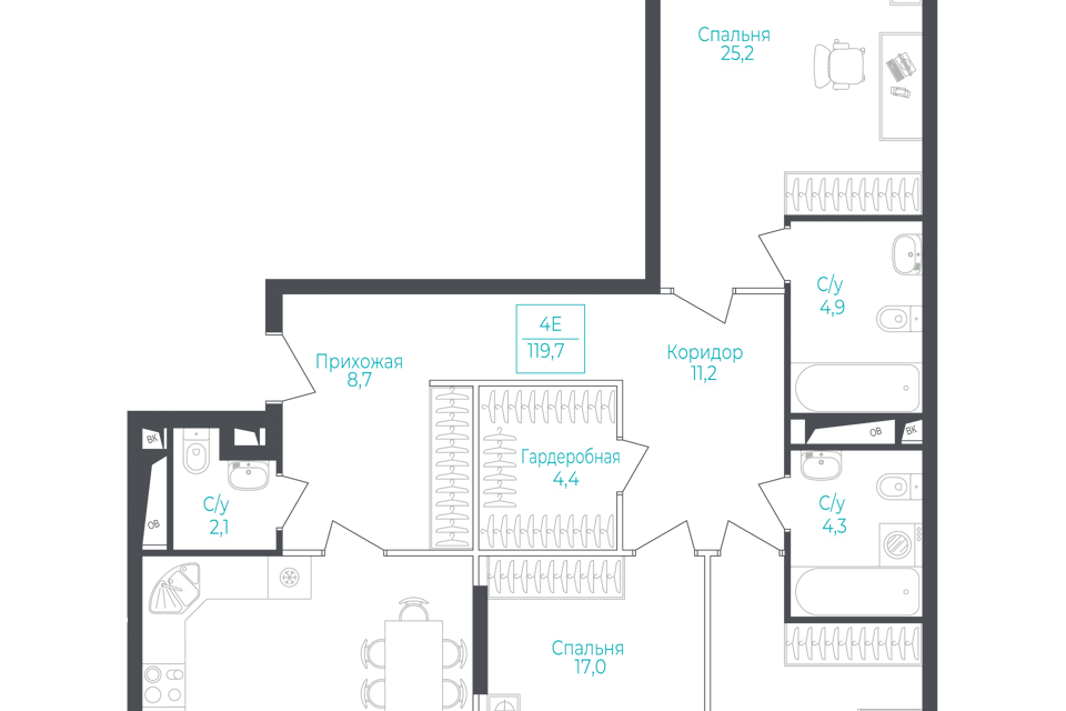 4-комн. кв., 106.9 м², 21/25 этаж