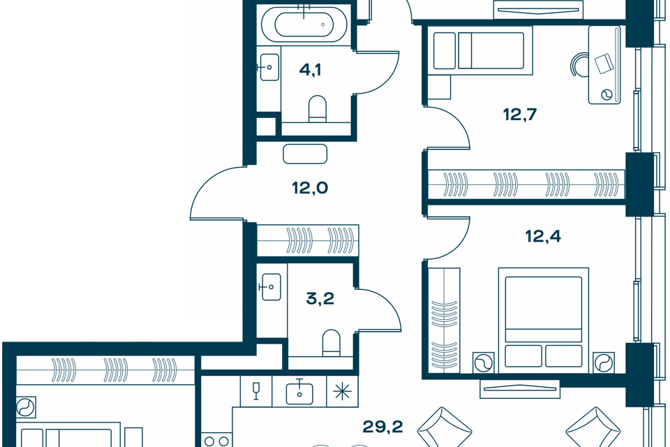 4-комн. кв., от 95.4 м², 26-36 этажи