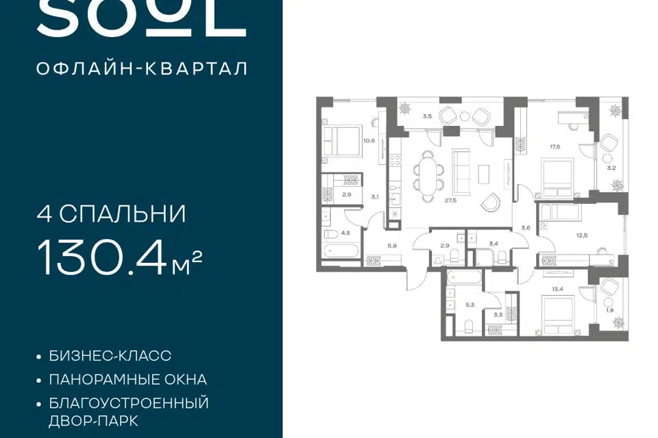 4-комн. кв., 130.1 м², 21/21 этаж