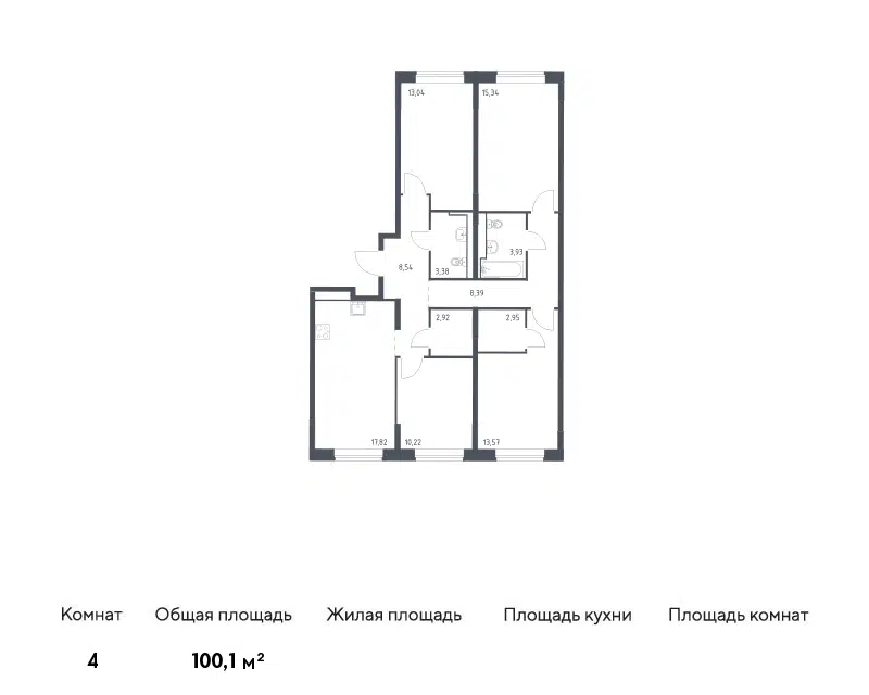4-комн. кв., 103.9 м², 13/16 этаж
