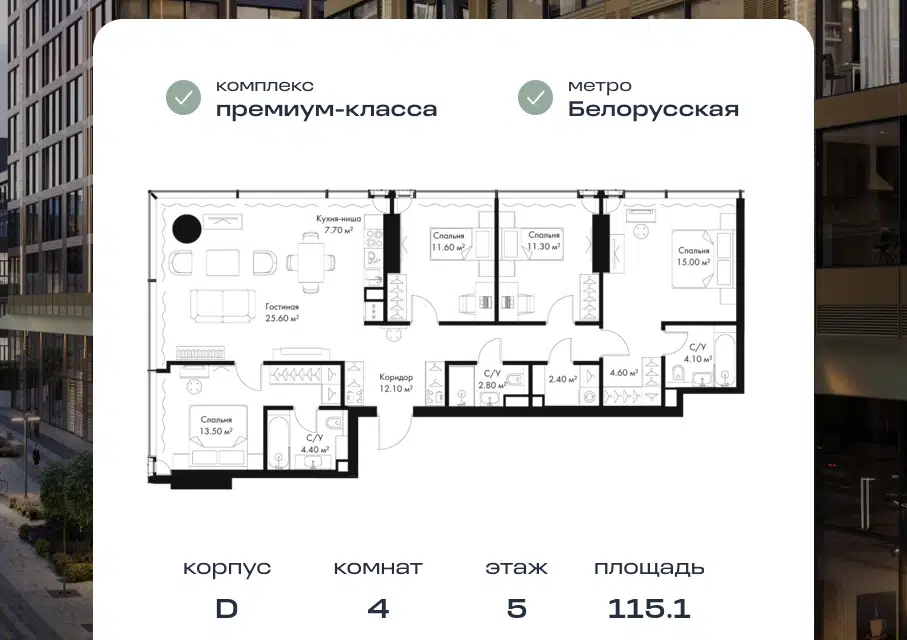 4-комн. кв., от 115.1 м², 6-27 этажи