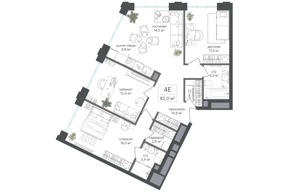 4-комн. кв., от 82 м², 3-13 этажи