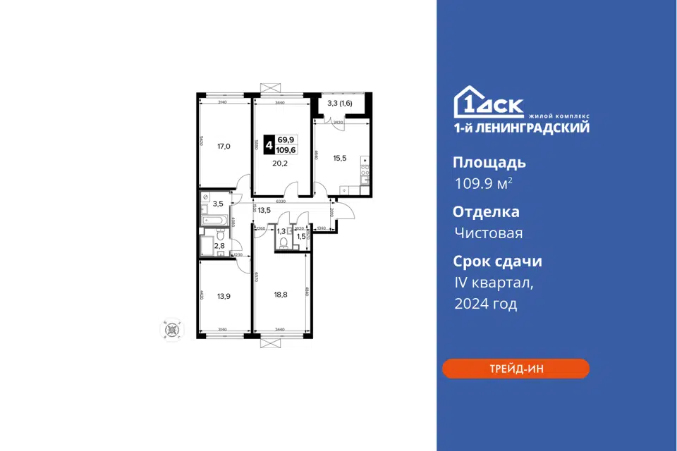 4-комн. кв., 109.9 м², 5/14 этаж