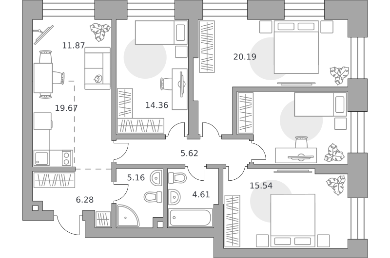 4-комн. кв., от 92.1 м², 24/28 этаж