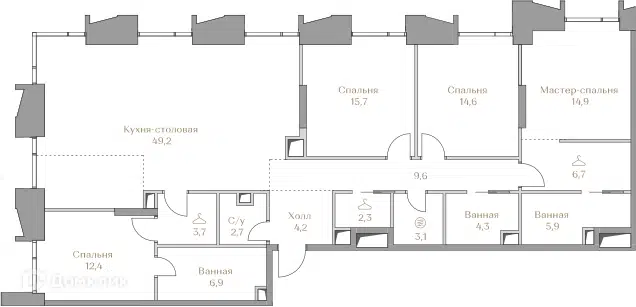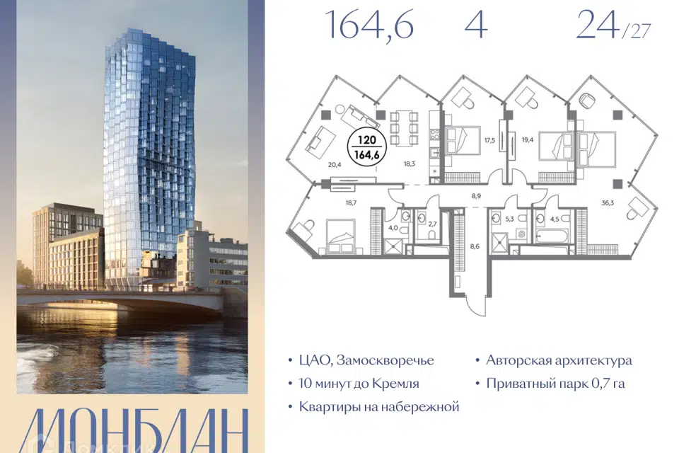 4-комн. кв., от 164.6 м², 3-24 этажи