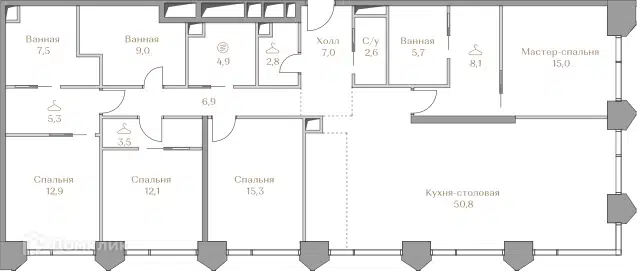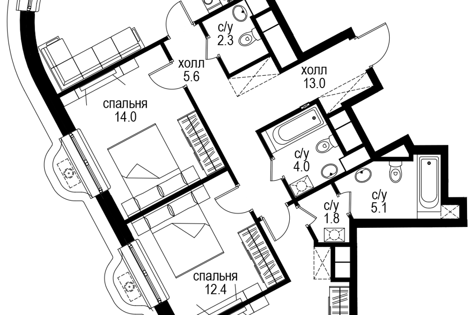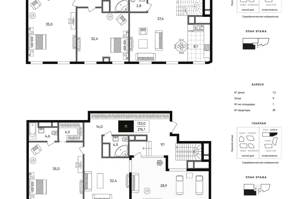 4-комн. кв., от 151.3 м², 2-22 этажи