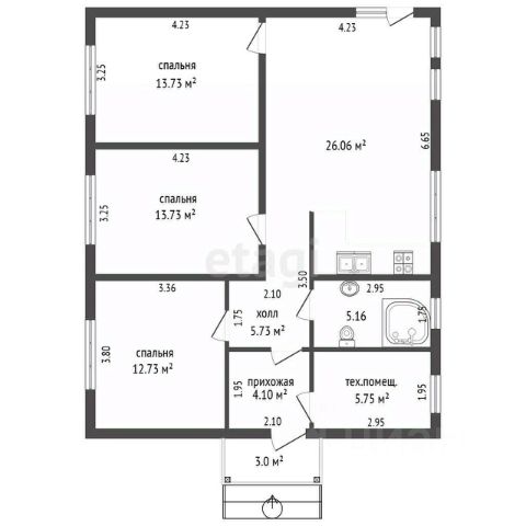 Дом, 3 спальни, 104.5 м², 1 этаж