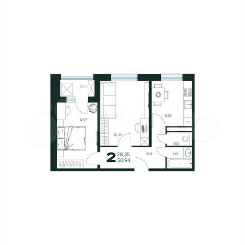 2-комн. кв., 40.9 м², 6/12 этаж