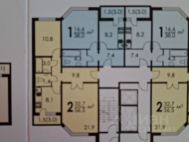 2-комн. кв., 55.5 м², 15/17 этаж