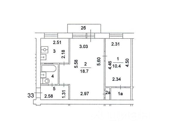 2-комн. кв., 44 м², 2/5 этаж