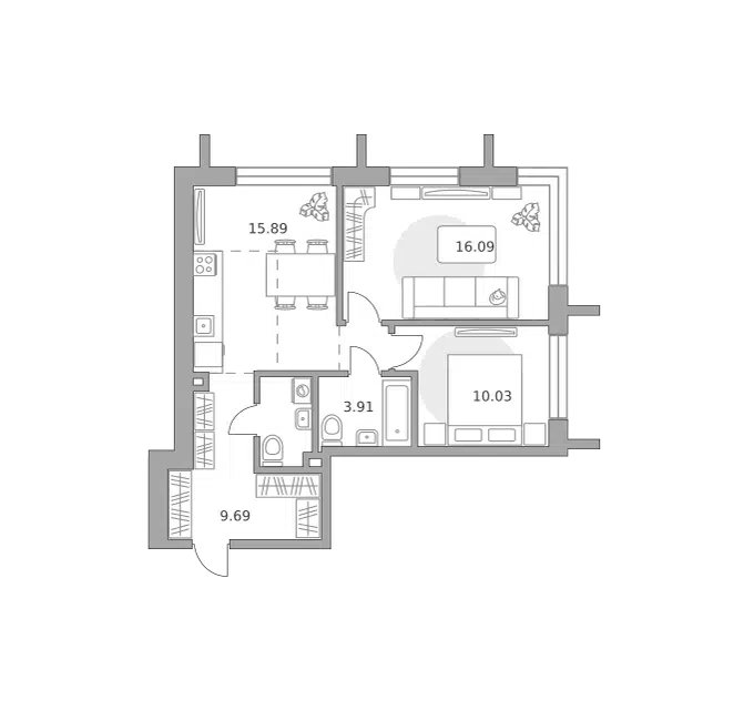 2-комн. кв., 69.3 м², 9/23 этаж