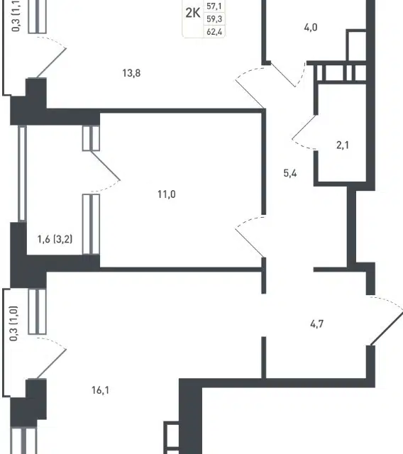 2-комн. кв., 59.8 м², 13/13 этаж