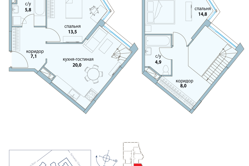 2-комн. кв., 58.5 м², 18/48 этаж