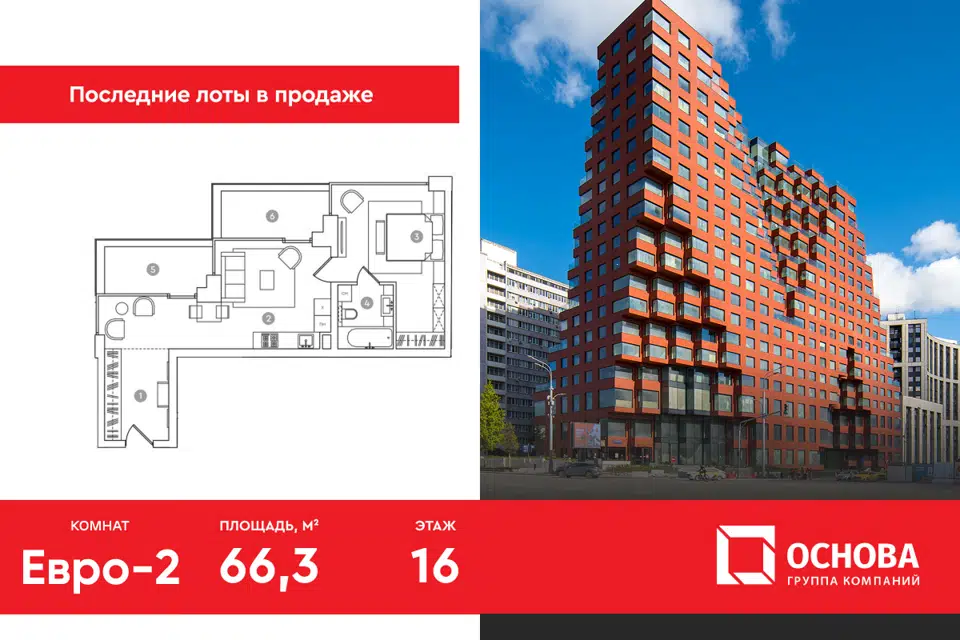 2-комн. кв., 66.3 м², 16/19 этаж