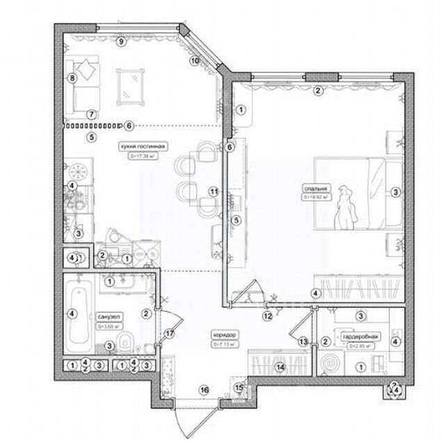 2-комн. кв., 67.8 м², 17/20 этаж