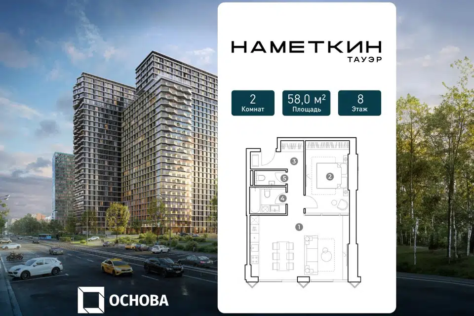 2-комн. кв., 58 м², 8/29 этаж