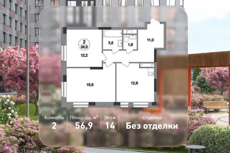 2-комн. кв., 56.9 м², 14/19 этаж