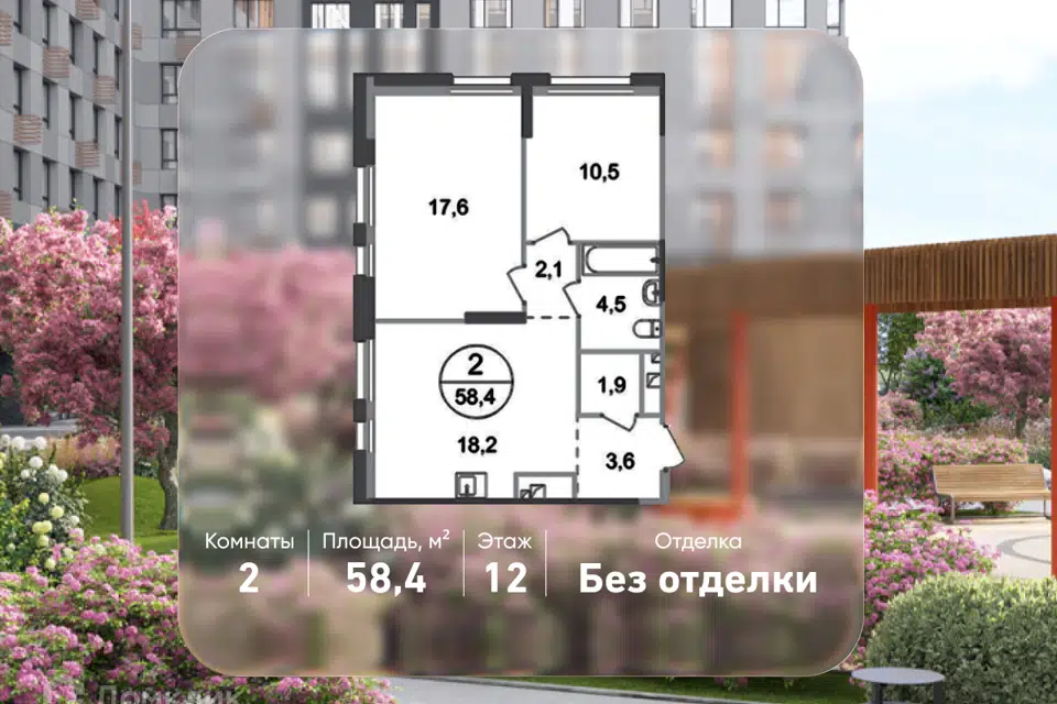 2-комн. кв., 58.4 м², 12/19 этаж