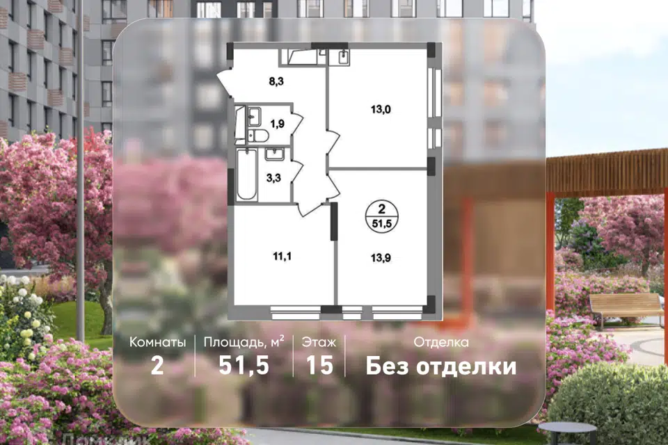 2-комн. кв., 51.5 м², 14/19 этаж