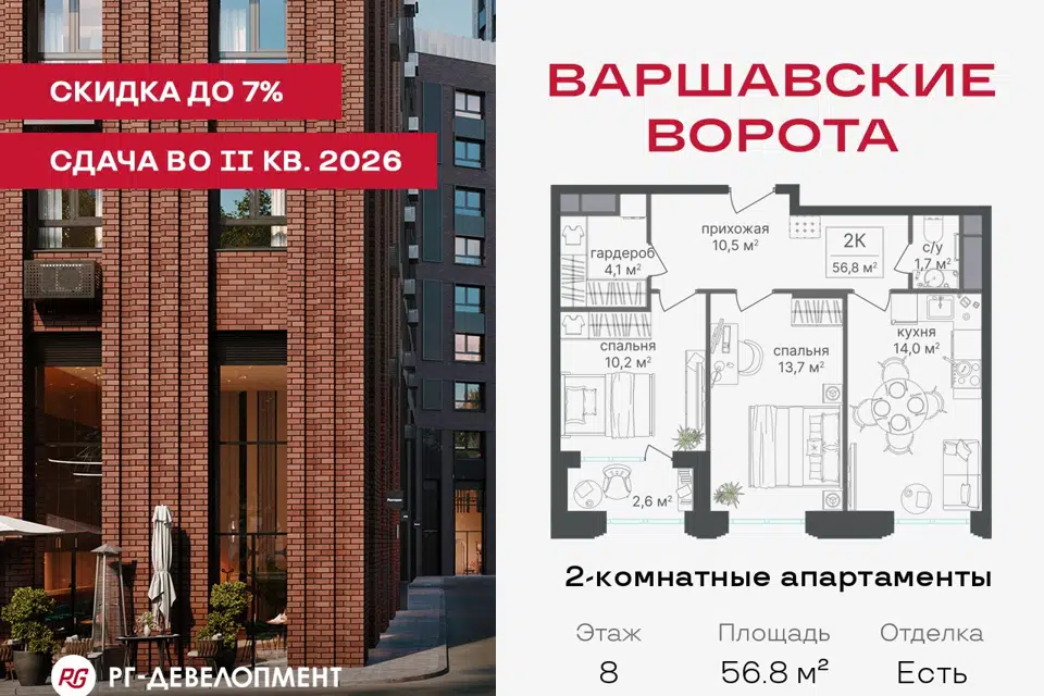 2-комн. кв., 56.8 м², 8/30 этаж