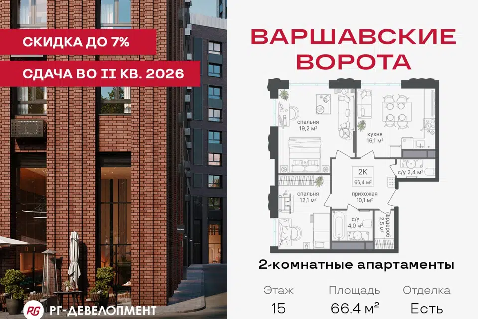 2-комн. кв., 66.4 м², 15/30 этаж
