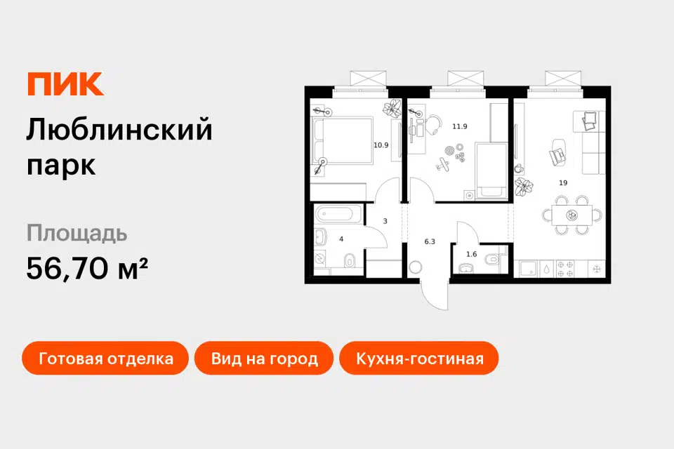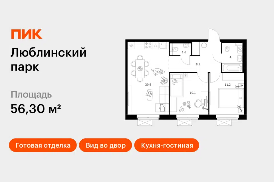 2-комн. кв., 57.3 м², 11/20 этаж