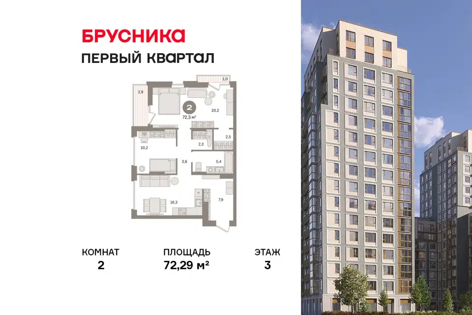 2-комн. кв., от 70.5 м², 13-25 этажи
