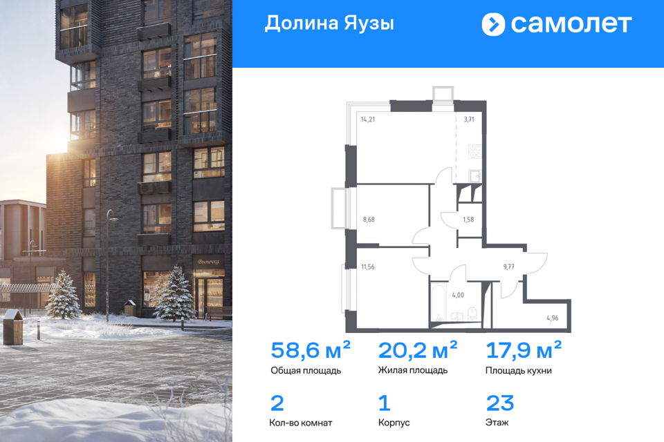 2-комн. кв., 59.1 м², 4/17 этаж