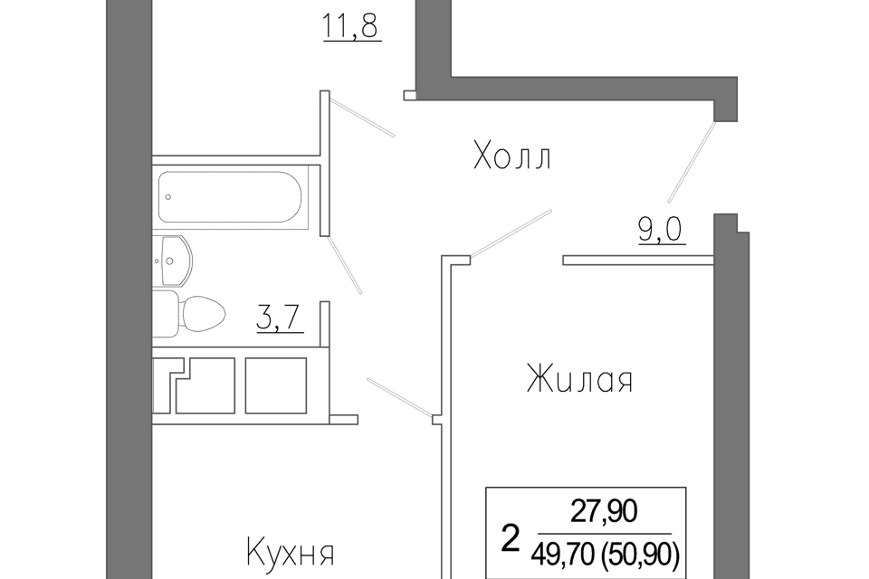 2-комн. кв., 43.39 м², 10/27 этаж