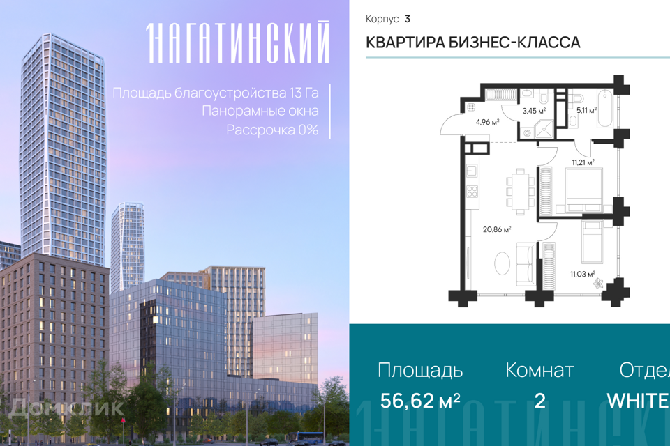 2-комн. кв., от 56.62 м², 3-24 этажи
