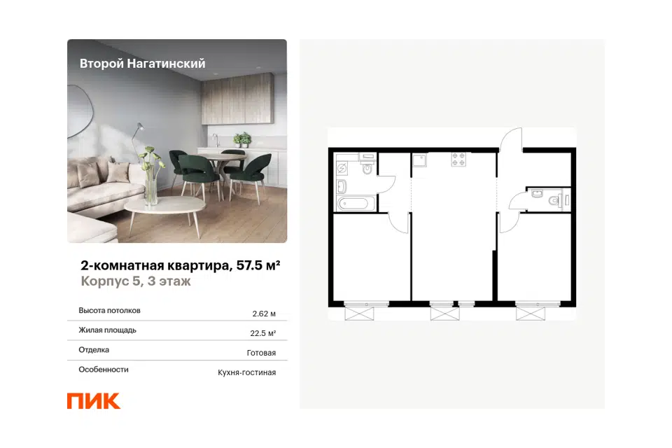 2-комн. кв., от 57.8 м², 5-18 этажи