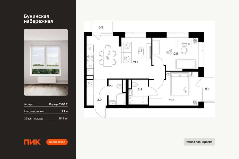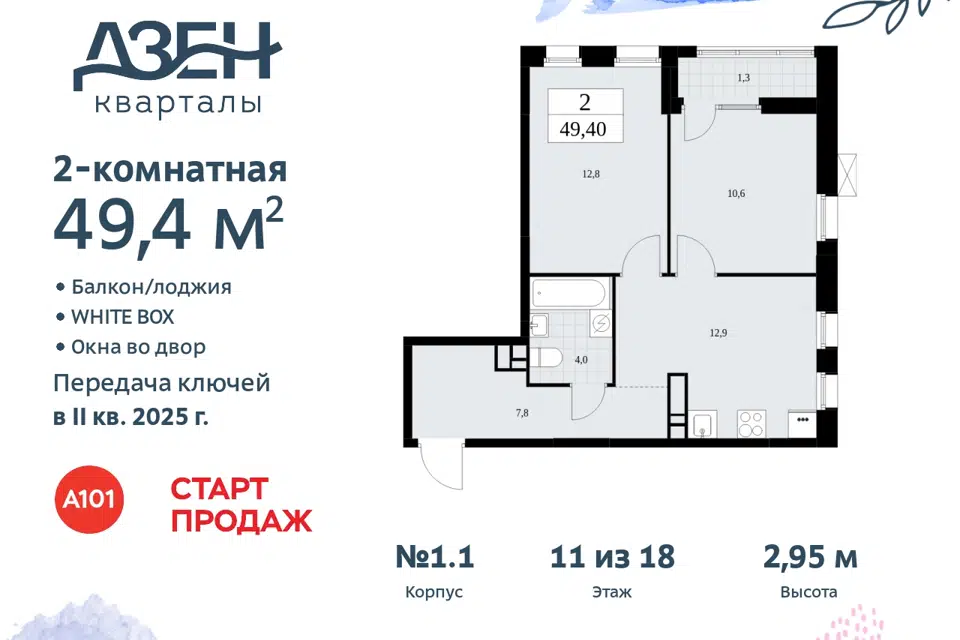 2-комн. кв., от 48.6 м², 2-11 этажи