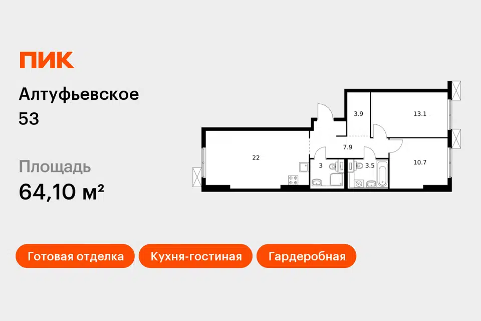 2-комн. кв., 64.1 м², 2/33 этаж