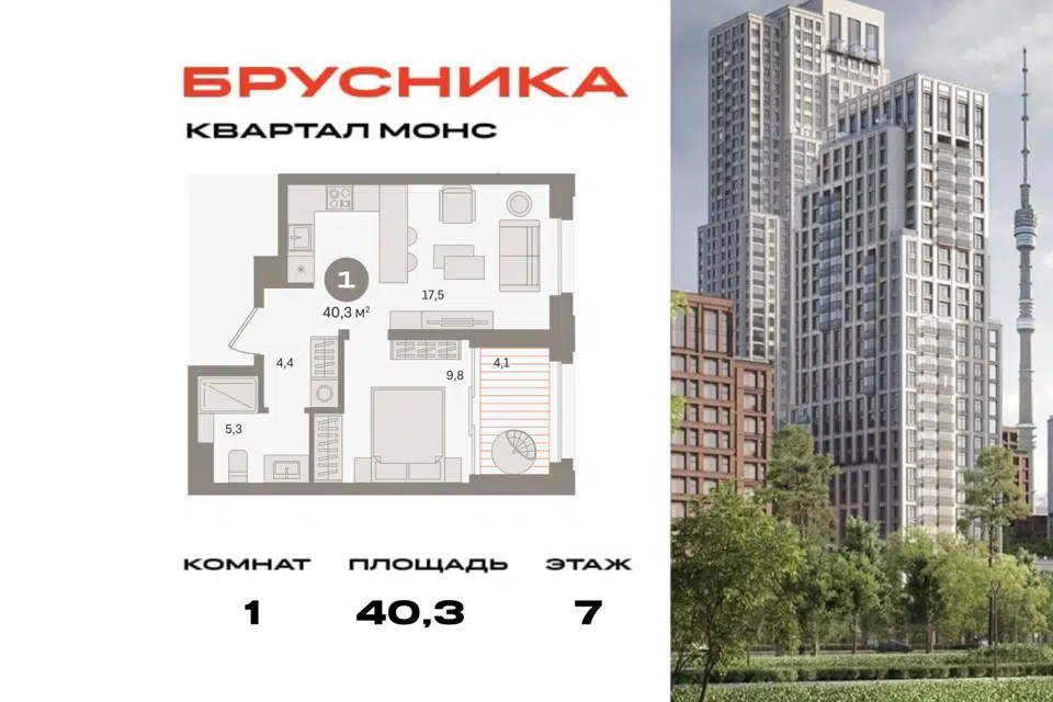 2-комн. кв., 40.33 м², 7/27 этаж