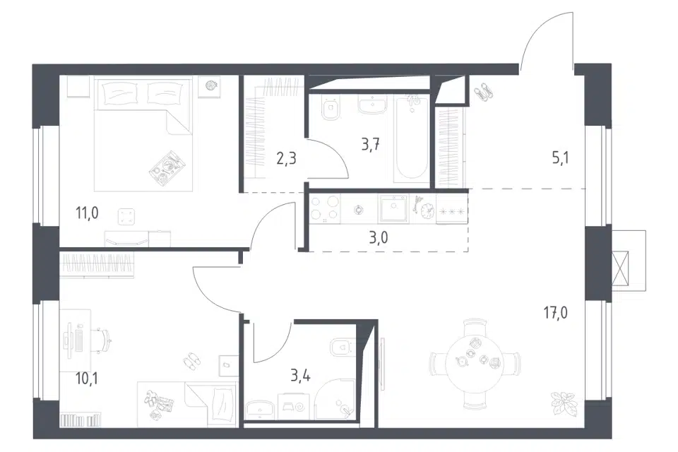 2-комн. кв., 57.8 м², 14/17 этаж