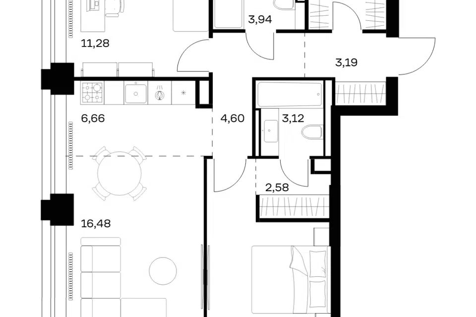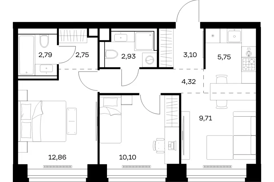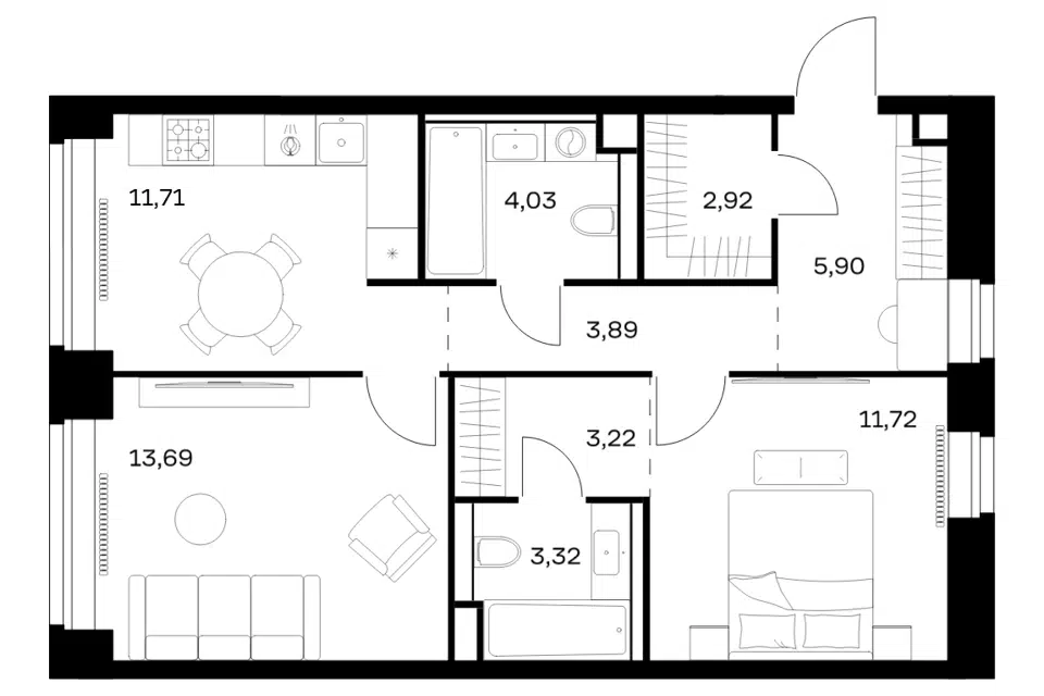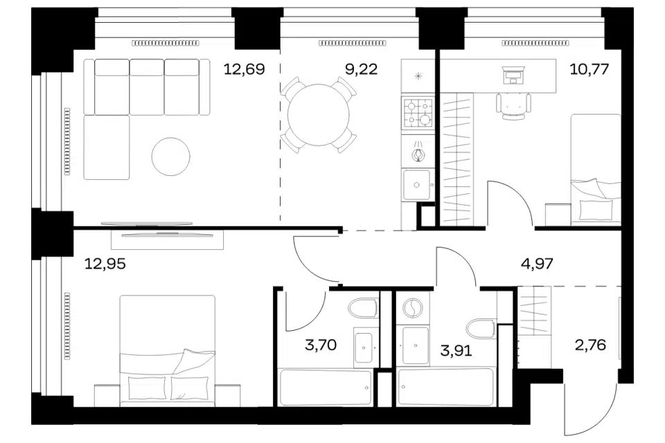 2-комн. кв., 60.97 м², 12/40 этаж