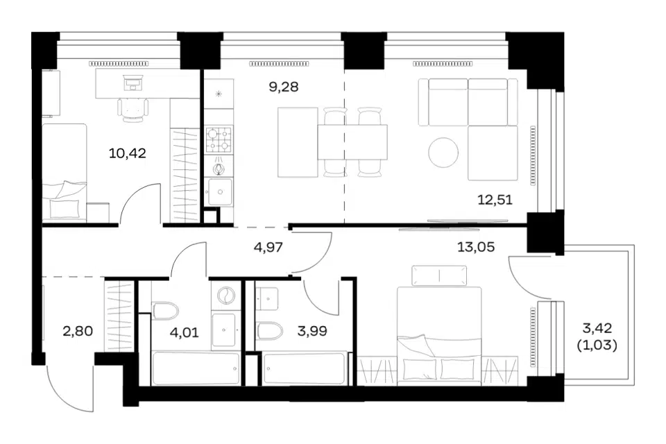 2-комн. кв., 42.2 м², 13/42 этаж