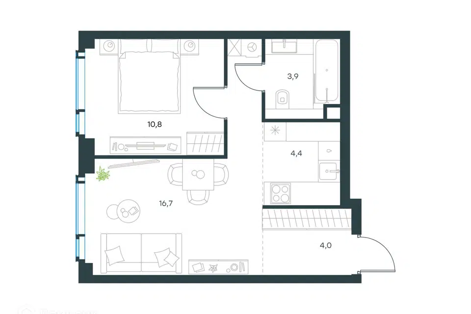 2-комн. кв., 39.8 м², 2/24 этаж