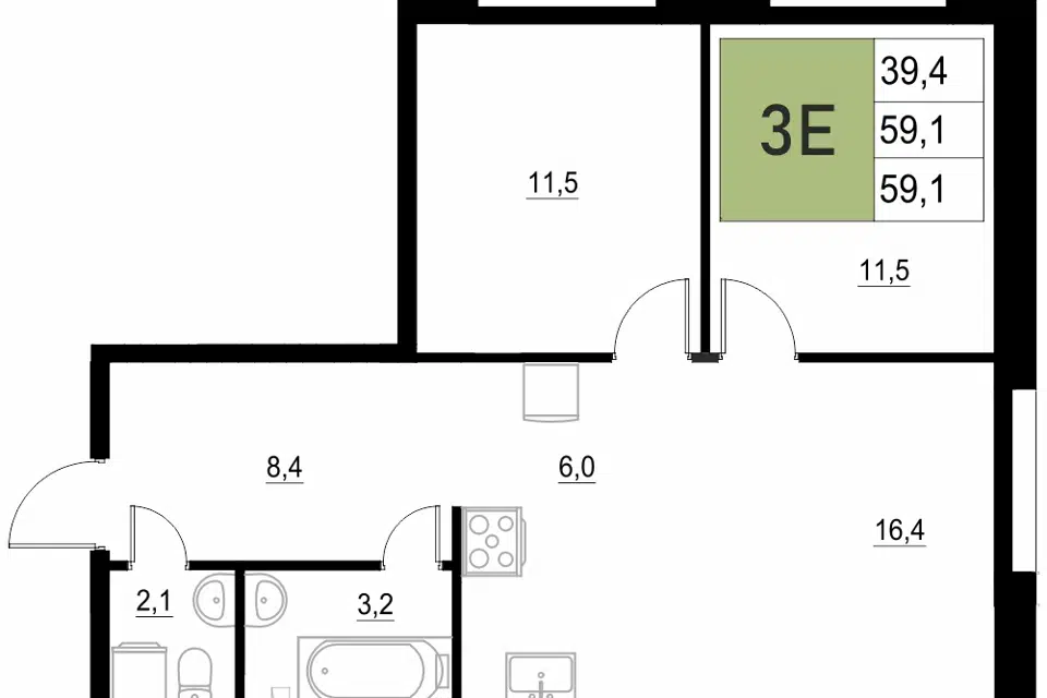 3-комн. кв., 59.1 м², 2/18 этаж