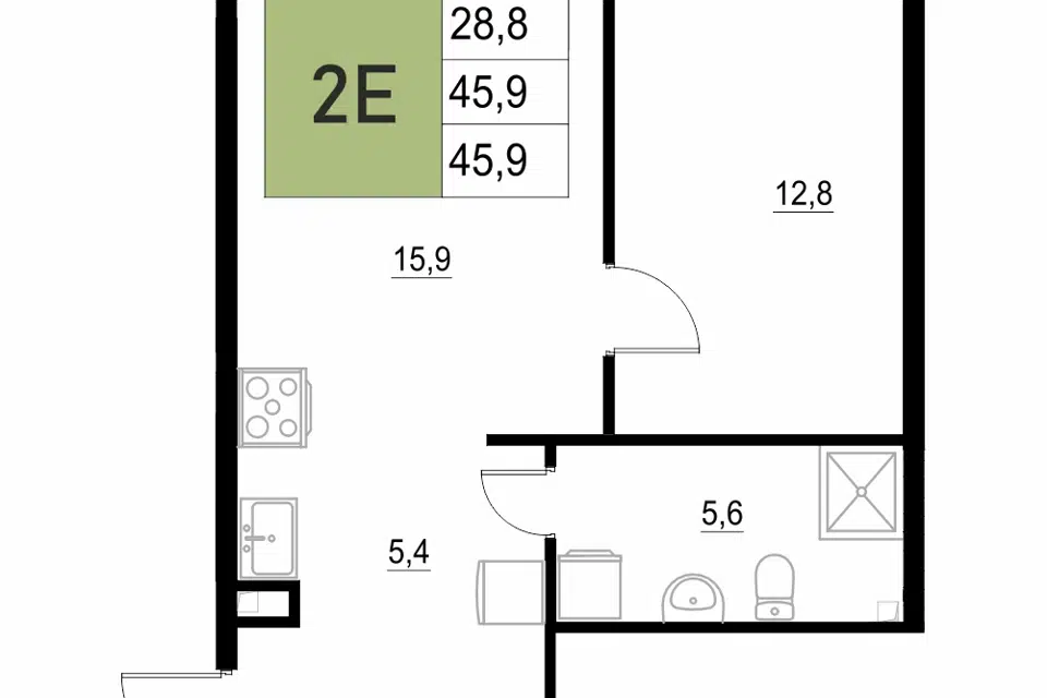 2-комн. кв., 45.9 м², 2/18 этаж